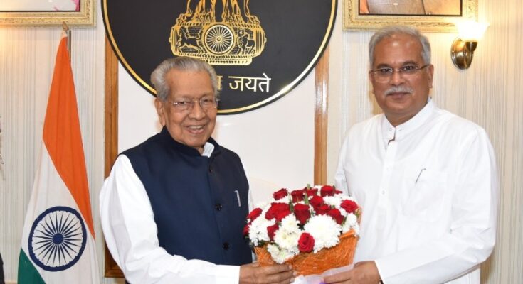 The Chief Minister of Chhattisgarh, Mr. Bhupesh Baghel greeted the Governor Mr. Vishwabhushan Harichandan at Raj Bhavan today by presenting a bouquet of flowers. Matters related to the interest of the state were discussed in the meeting. Chief Secretary Mr. Amitabh Jain, Additional Chief Secretary to Chief Minister Mr. Subrat Sahu were also present on the occasion.