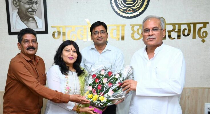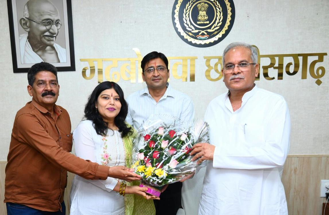 Well-known folk singer Smt. Alka Parganiha Chandrakar called on Chief Minister Mr. Bhupesh Baghel at his residence office this evening. He invited the Chief Minister as the chief guest on the occasion of the launch of Chhattisgarhi Radio Channel FM 91.2. The Chief Minister thanked him for the invitation.