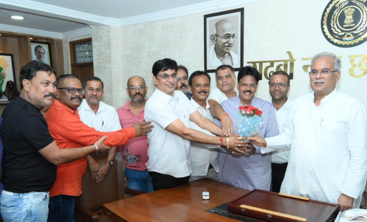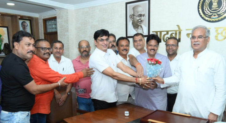 The delegation of Brahmin Samaj Balod met Chief Minister Mr. Bhupesh Baghel at his residence office this evening. The delegation discussed various social issues with the Chief Minister and thanked the Chief Minister for the efforts being made for the all-round development of the state through public welfare government schemes and presented a bouquet to him. On this occasion, President of Brahmin Samaj Balod Mr. Atal Dubey, Mr. Santosh Dubey, Mr. Krishna Dubey, Mr. Vinod Sharma, Mr. Pramod Dubey, Mr. Arun Upadhyay, Mr. Dheeraj Upadhyay and others were present.