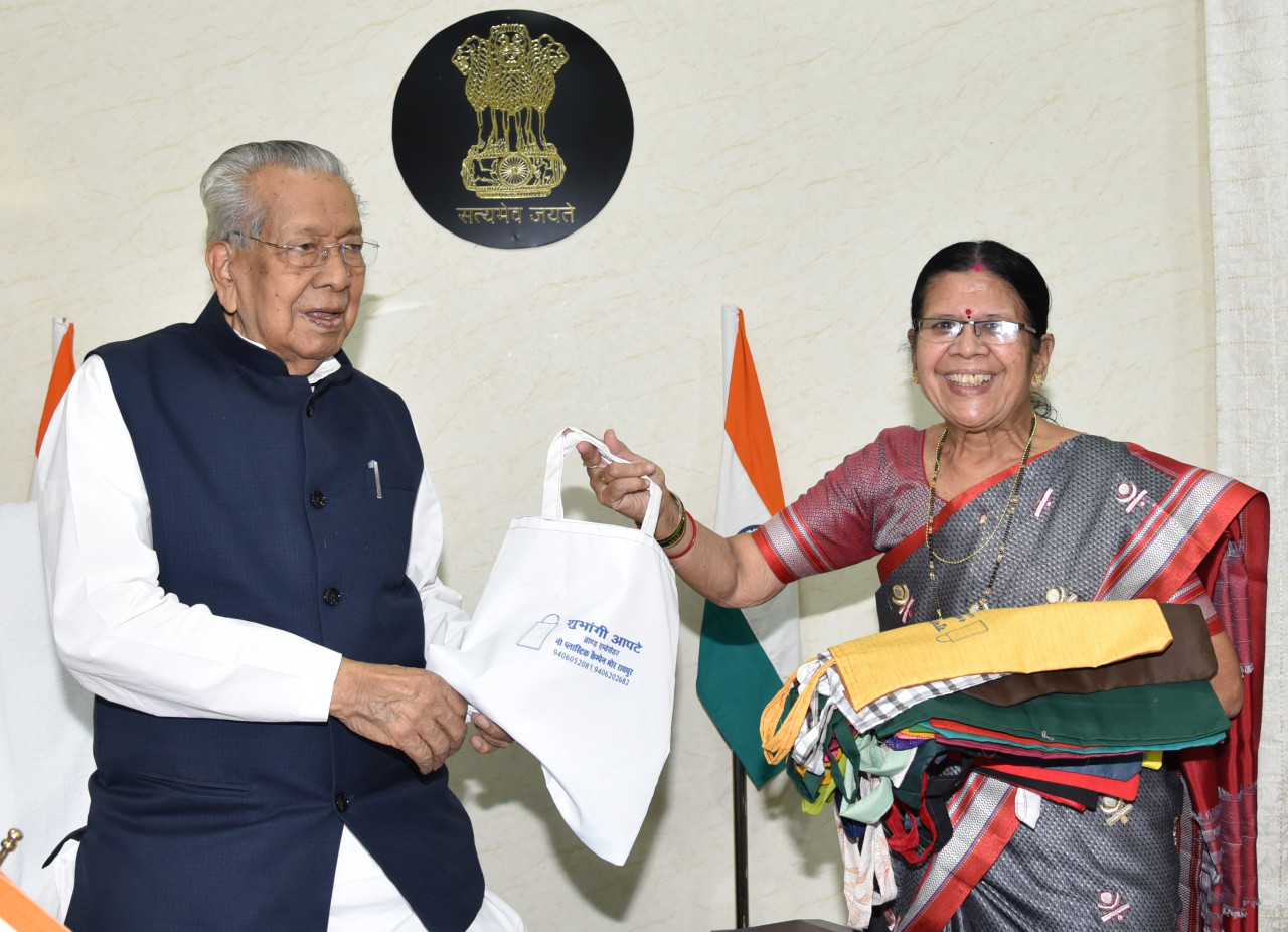 Smt. Shubhangi Apte paid a courtesy call on Governor Shri Vishwabhushan Harichandan at Raj Bhavan today. On this occasion, Mrs. Apte informed the Governor about the plastic liberation campaign and the efforts being made by her towards environmental protection.