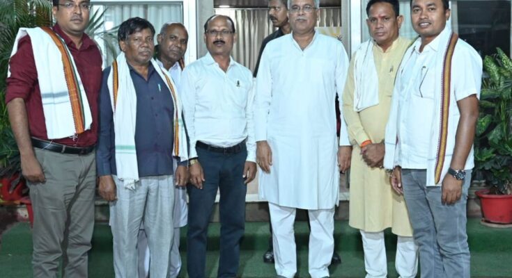 A delegation of Central Tribal Dhruv-Gond Samaj Durg met Chief Minister Mr. Bhupesh Baghel at his residence office this evening. He invited Chief Minister Mr. Baghel as the chief guest in the program organized on the occasion of Rani Durgavati Sacrifice Day on June 24 at Civil Lines, Durg. The Chief Minister thanked him for this invitation.