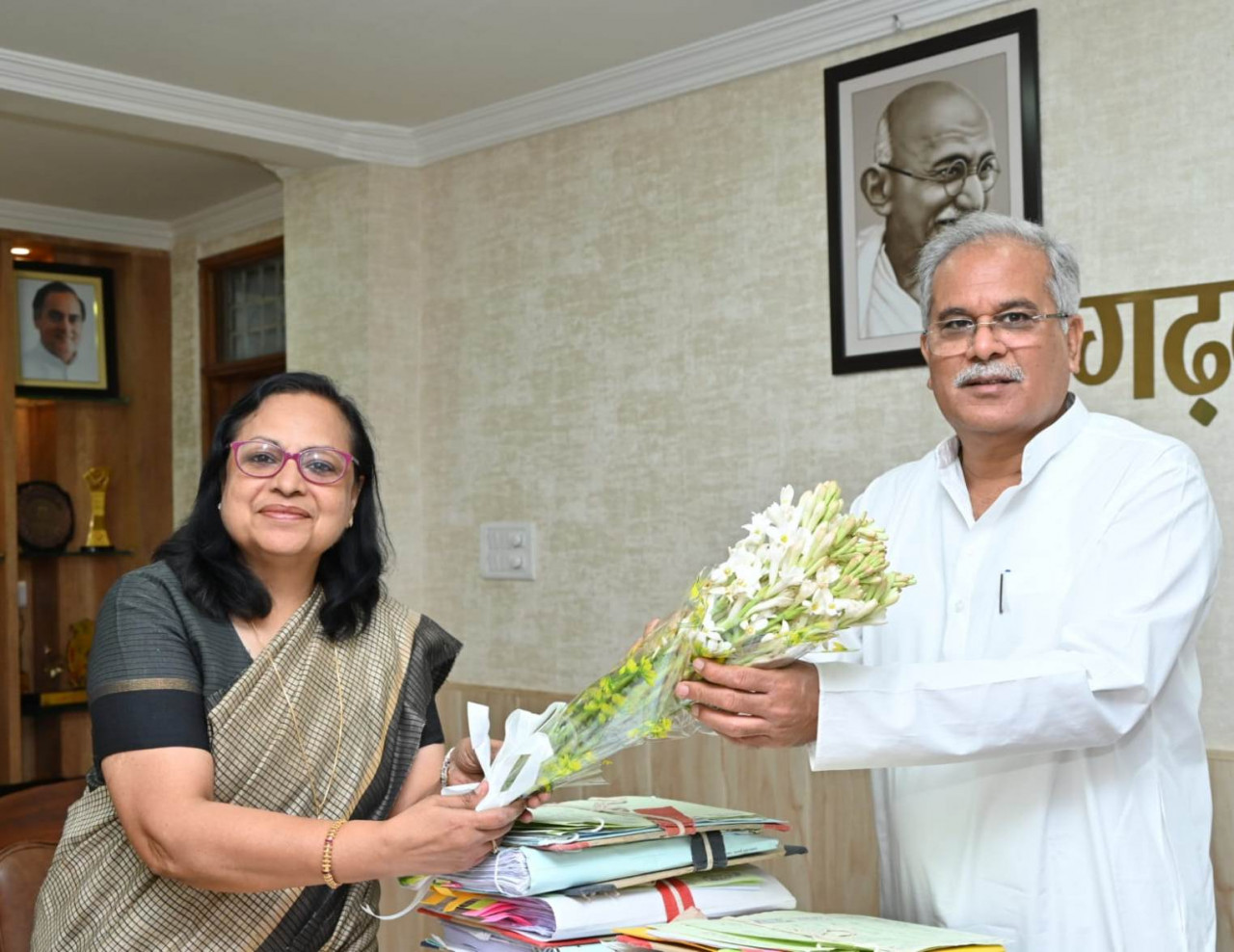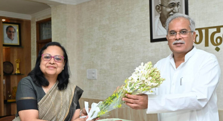 Vice Chancellor of Hemchand Yadav University, Durg Dr. Aruna Palta called on Chief Minister Mr. Bhupesh Baghel at his residence office today. He invited the Chief Minister to attend the foundation day and first convocation ceremony of the university organized on April 24. Chief Minister Mr. Baghel thanked Vice Chancellor Dr. Palta for this invitation.