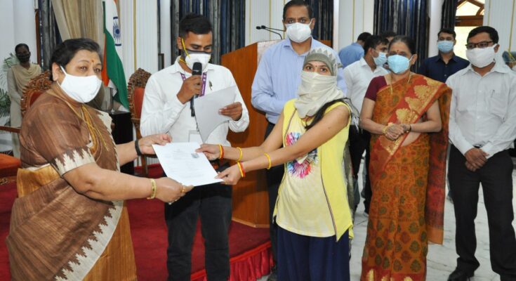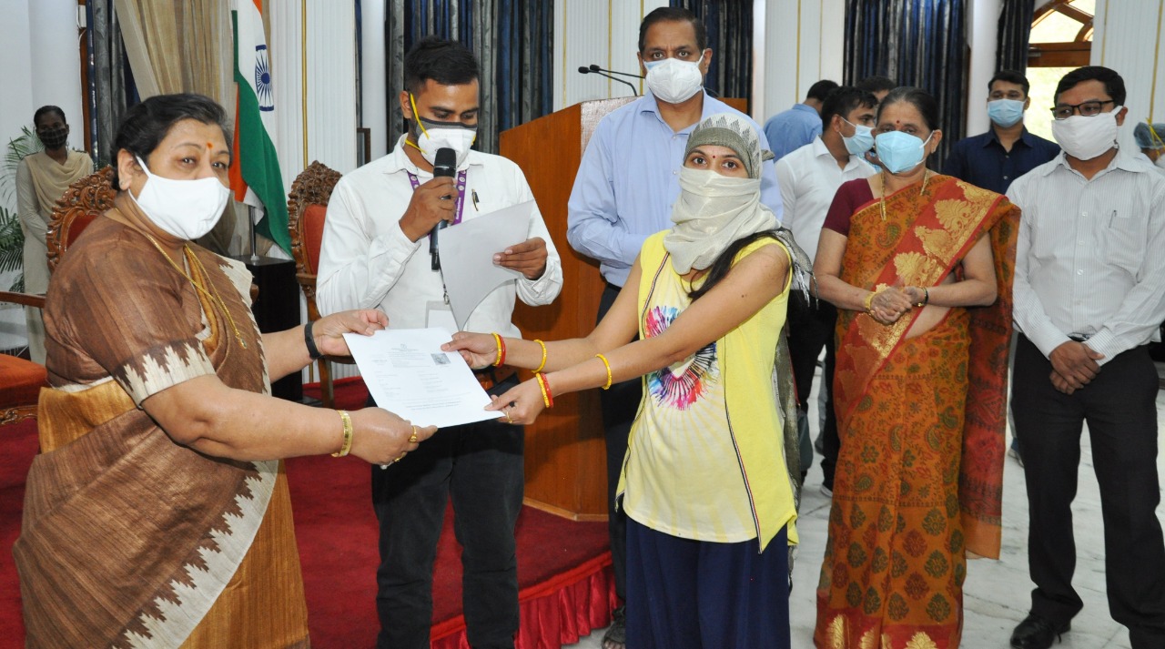 Raipur, 23 May 2021. Kovid vaccination camp was organized for officers and employees and their families (aged 18 to 44) in the court hall of Raj Bhavan here today. Governor Ms. Anusuiya Uike visited the camp on the occasion. He wished everyone good health and said that the whole country is suffering from corona infection. This time awareness is needed to avoid corona. He said that all should follow the instructions given by the government for prevention of corona and must apply corona vaccine. Corona infection is prevented after applying the vaccine, and if anyone has the infection, they will soon be cured. Follow the guidelines of doctors before applying the vaccine and must also wear a mask after applying the vaccine, Keep washing hands and follow social distance. The governor also distributed a certificate of vaccination to the vaccinated citizens. 178 people were vaccinated in this camp. On this occasion, Medical Officer of Raj Bhavan, Dr. Rupal Purohit, Medical Officer Dr. Suniti Mangrulkar and Dr. Shishir Sahu were present.