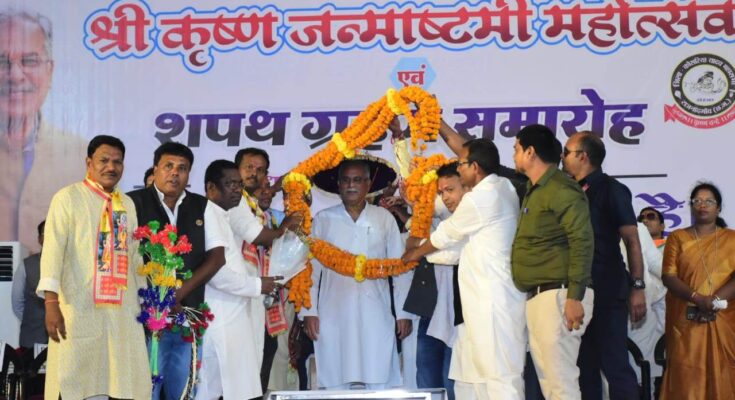 Chief Minister, District Nagar Kosaria Yadav, participated in the Shri Krishna Janmashtami Mahotsav and oath-taking ceremony organized by the Mahasabha, Rajnandgaon. The
