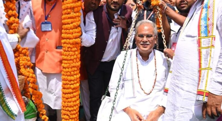 Dadsena Kalar Samaj in Bedma village of Kondagaon district expressed gratitude to Chief Minister Mr. Bhupesh Baghel by weighing it with Mahua for the decision to purchase 65 types of forest produce on support price.