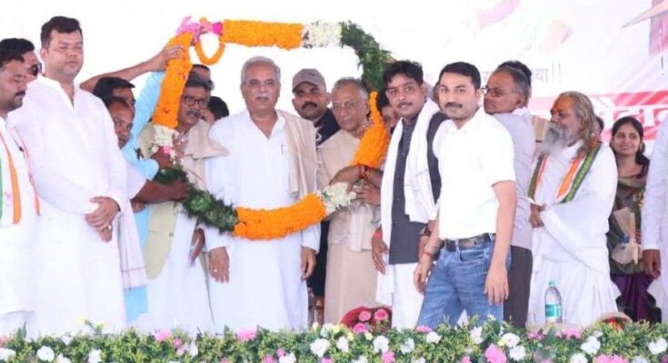 Chief Minister Mr. Bhupesh Baghel attended the swearing-in ceremony and felicitation ceremony of District Sahu Sangh organized at Dussehra ground of village Birra of Bramhandih development block of Janjgir-Champa district today. He worshiped Chhattisgarh Mahtari, devotee Mata Karma and inaugurated the conference by paying homage to the ancestors of the society. While addressing the conference, Mr. Baghel has announced to make Gram Panchayat Birra and Bamhnidih as Nagar Panchayat. Along with this, he has approved opening of Naveen Swami Atmanand English Medium School, construction of new community hall, opening of junior engineer office of electricity department in Birra village panchayat. In view of the demand of the villagers, the Chief Minister also approved the construction of a road bridge from Bamhnidih to Dahida on the Hasdeo river.