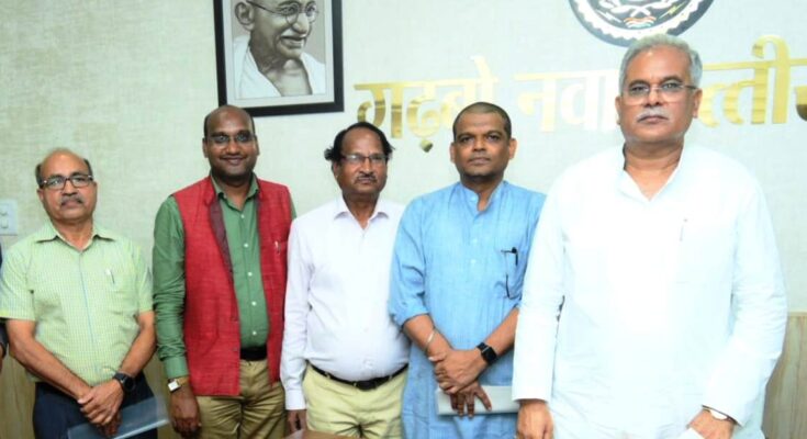 The delegation of Chhattisgarhi Brahmin Vikas Parishad Imlipara, Bilaspur met Chief Minister Mr. Bhupesh Baghel at his residence office this evening. During this, Chairman of Chhattisgarh State Mineral Development Corporation Mr. Girish Dewangan and Chief Minister’s advisor Mr. Pradeep Sharma were present.