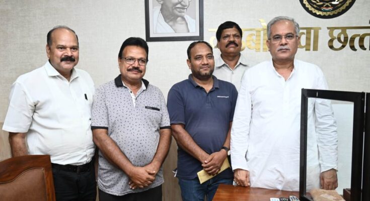 Chhattisgarh / RaipurRaipur: Delegation of District Minor Forest Produce Committee, Raigarh met Chief Minister Bhupesh Baghel. July 31, 2022 - by Varsha Dwivedi Spread the loveRaipur, 31 July 2022 A courtesy call on Chief Minister Mr. Bhupesh Baghel at his residence office here today. The delegation also included Ms. Kailash Gupta, Mukund Murari Patnaik and Suresh Dagla.