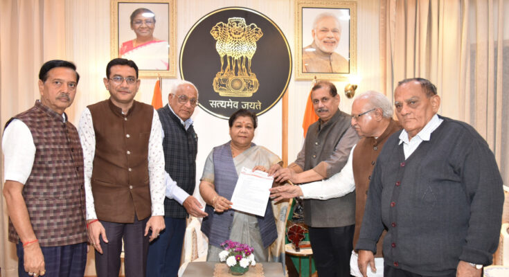 The delegation of Jain Samvedna Trust Raipur paid courtesy call on Governor Ms. Anusuiya Uike at Raj Bhavan today. The members of the delegation told the Governor that permission has been given for tourism and other activities under the eco-sensitive zone through a notification in the center of faith of Jain followers, Tirtharaj Shri Sammed Shikhar. The members said that this provision is against the dignity of a non-violent proven area. The delegation handed over a memorandum addressed to the Governor Sushri Uike and through her to the President and the Prime Minister and urged for initiative to declare Sammed Shikhar ji as a holy non-violence Jain pilgrimage area. Governor Sushri Uike listened seriously to the people of the Jain community and talked about making efforts for the expected cooperation.