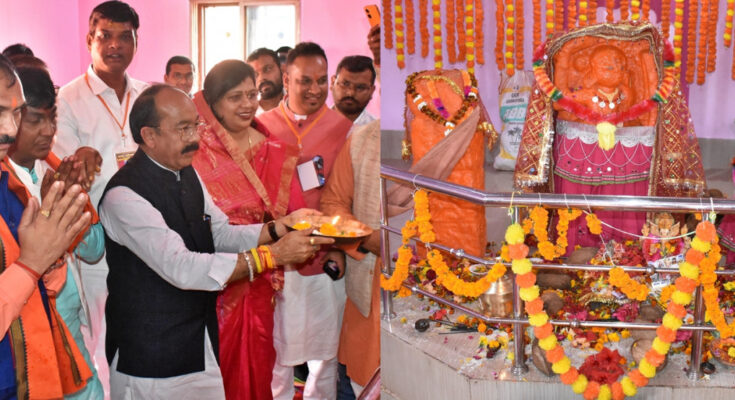 Deputy Chief Minister Shri Arun Sao and Health Minister Shri Shyam Bihari Jaiswal, who reached village Sorar in Balod district today to participate in the Kalar Mahotsav, worshiped Mata Bahadur Kalarin with full rituals in the temple of Mata Bahadur Kalarin, ensuring the happiness of the state and its people. Wished for prosperity and happiness. Many local public representatives including MLA Mrs. Sangeeta Sinha and Mr. Yogeshwar Raju Sinha were also present during this period.