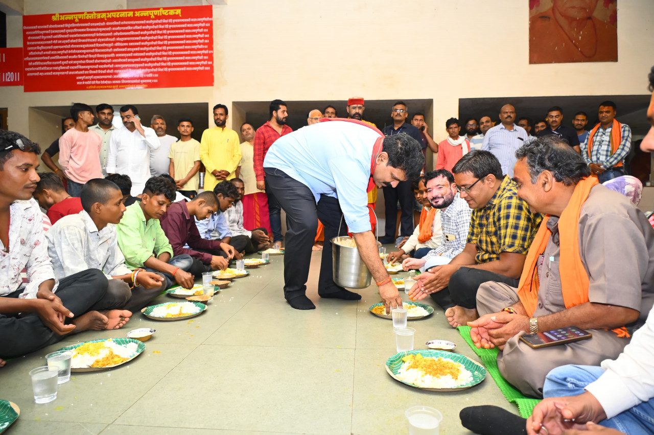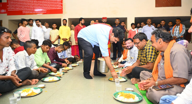 Deputy Chief Minister and Home Minister Shri Vijay Sharma today inspected the arrangements made for the Kanwariyas at Mrityunjay Ashram in Amarkantak and also sat with the Kanwariyas and had food himself. Deputy Chief Minister Shri Sharma also distributed food to the Kanwariyas and participated with them in this important journey of the holy month of Sawan. The Deputy Chief Minister will reach Narmada Maiyya Temple and Jaleshwar Mahadev Temple in Amarkantak tomorrow morning and offer prayers.