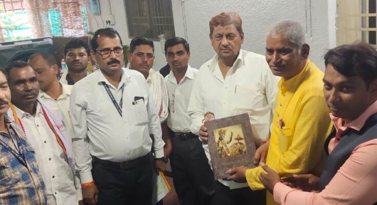 Shrimad Bhagavad-Gita was presented to Forest Minister Mr. Mohammad Akbar by Councilor of Municipality Kawardha, Narendra Dewangan at his government residence office in the capital. This Bhagavad Gita with state-of-the-art technology speaks through sensors. Seeing this unique Bhagavad Gita, the Forest Minister was impressed and praised it.