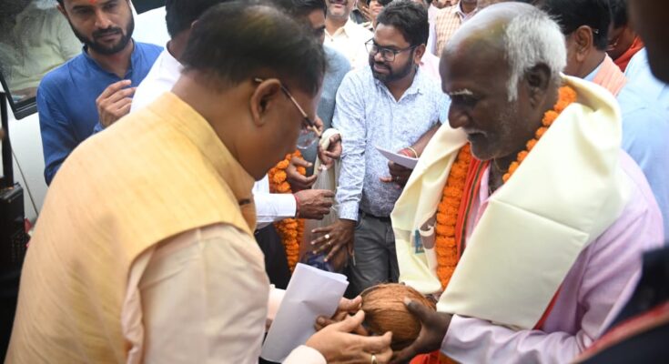 To make the life of handicapped people easy and happy, Chief Minister Shri Vishnudev Sai distributed free bus passes to 07 handicapped persons in village Bagiya of Jashpur and honored them by presenting shawl and coconut.