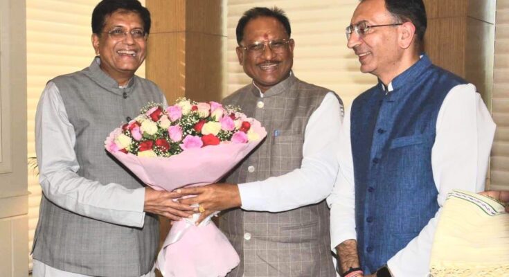 Chhattisgarh Chief Minister Shri Vishnu Dev Sai met Union Commerce and Industry Minister Shri Piyush Goyal in New Delhi today. In the meeting, issues related to the state’s industrial corridor, development of international air cargo facilities and many other development were discussed. In this meeting, the Union Minister has assured to approve many proposals for the development of Chhattisgarh, which will give a new direction to the state.