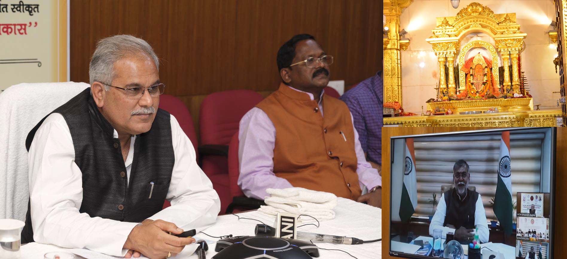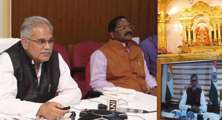 Raipur, 2 March 2021. With the completion of the Rs 33 crore Maa Bamleshwari Devi Temple Dongargarh Development Project, Dongargarh of Chhattisgarh will emerge as an important religious place on the tourism map of the country. This will open new doors of possibilities for tourism development, while local people will get good employment opportunities. The Chief Minister was addressing the Bhumipujan ceremony of the Maa Bamleshwari Devi Temple Dongargarh Development Project held at Dongargarh from his office hall in the Assembly premises here today. The program was presided over by the Union Minister of State for Tourism and Culture, Prahlada Singh Patel. Mr. Patel also attended the event through virtual medium. Chhattisgarh Tourism Minister i Tamradhwaj Sahu performed Bhoomipujan at the program organized in Dongargarh. Culture Minister Amarjit Bhagat was also present in Raipur.