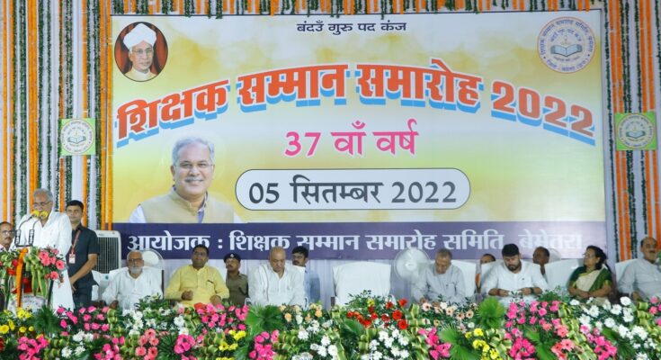 Chief Minister Shri Bhapesh Baghel has said that all possible efforts are being made by the State Government to make the coming generation strong ideologically and educationally. The Chief Minister expressed his views to this effect while addressing the teacher’s award ceremony held at Bemetara today. In Bemetara district, on the occasion of Teacher’s Day, 37th Teacher Award Ceremony was organized at Krishi Upaj Mandi, Bemetara.