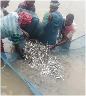 Chairman of the committee, Mr. Ramkumar Yadav said that through the committee, they are doing fish seed production and fish farming. The committee has 22 members. Fish farming is being carried out on a 10-year lease to the government ponds of the panchayat. Currently they have 05 ponds with a total area of ​​11.460 hectares. In the year 2019, 25 lakh fish seed spans were cultivated from departmental schemes. About 10 lakh fish seed stow fry were produced by mutual harmony, dedication and hard work of the members of the committee. Out of which 2.20 lakh fish seeds were stored in the lease pond. Remainder 7. 80 lakh fish seeds were sold to private fishermen. He got an income of one lakh rupees from selling fish seed. 40 quintals of fish were produced from the fish seed grown in the leased pond. Which has received 4 lakh rupees from the sale. In this way, the committee earned more than 05 lakh rupees in a very short time. He is excited about the increase in income of the committee members. They have expressed gratitude to the government for promoting the fisheries business. He said that small fish traders are being encouraged under the government’s plan to do business on a large scale through the committee. This is giving encouragement to the youth who are interested in fisheries. Through the scheme of the government is being encouraged to do business on a large scale. This is giving encouragement to the youth who are interested in fisheries. Through the scheme of the government is being encouraged to do business on a large scale. This is giving encouragement to the youth who are interested in fisheries.
