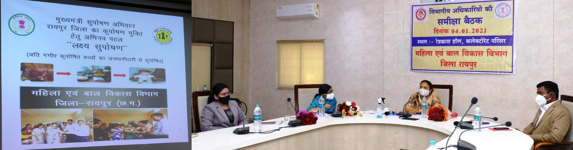 Smt Bhendia said that the situation of malnutrition in Raipur district and the efforts being made to eradicate it, supplementary nutritious food, establishment of Anganwadi workers and assistants, status of departmental buildings, Mahila Suraksha Yojana, Chief Minister’s Nutrition Campaign, Child Protection Scheme and the department’s After deliberating in detail on the problem demands, the concerned officers were given necessary directions. On this occasion, Secretary of the department Mrs. Shehla Nigar, Director Mrs. Divya Umesh Mishra, Collector Dr. S. Bharatidasan and departmental officers were present.