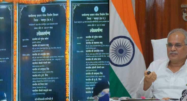 Chief Minister Mr. Baghel was addressing the program after inaugurating various construction works costing about Rs. 592 crore in Raigad and Jashpur districts and performing Bhoomi Pujan in a virtual program organized at his residence office today. These include construction and development works worth Rs 308 crore 31 lakh in Raigad district and Rs 283 crore 70 lakh in Jashpur district. On this occasion, Home Minister Shri Tamradhwaj Sahu, Agriculture Minister Shri Ravindra Choubey, School Education Minister Dr. Premsai Singh Tekam, Food Minister Shri Amarjit Bhagat, Public Health Engineering Minister Shri Guru Rudra Kumar, Urban Administration and Development Minister Dr. Shivkumar Dahria, Chief Minister K. Additional Chief Secretary Shri Subrata Sahu was present. Higher Education Minister Shri Umesh Patel, MLA Shri Prakash Nayak, Shri Chakradhar Singh Sidar, Shri Laljit Singh Rathia, Smt. North Jangde and Parliamentary Secretary from Jashpur Shri U.D. minz, MLA Sarvshree Vinay Kumar Bhagat, joined the program. On this occasion, the Chief Minister discussed with the beneficiaries of various schemes in both the districts and inquired about the benefits of the scheme from them.