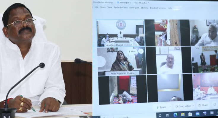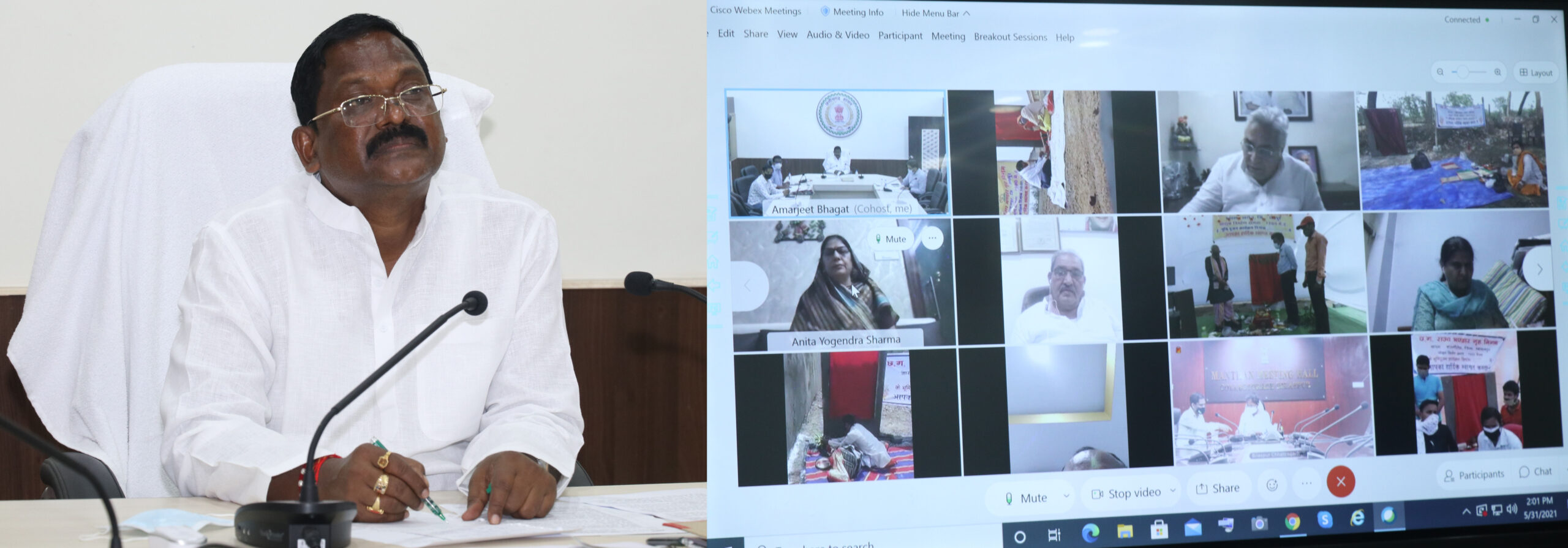 Raipur, 31 May 2021. Food Civil Supplies and Consumer Protection Minister  Amarjeet Singh Bhagat has said that a state-of-the-art food testing laboratory will be established in Nava Raipur. Shri Bhagat said the above things while performing e-bhoomi poojan of 6 new godowns of Chhattisgarh State Warehousing for safe storage of paddy purchased from farmers in support price in Chhattisgarh through video conferencing from his residence office here today. Construction of these warehouses with a capacity of about 54 thousand metric tons will start soon. These godowns will be built in Raipur, Bilaspur and Durg districts. 25 crore 81 lakh has been approved for the construction of these godowns.