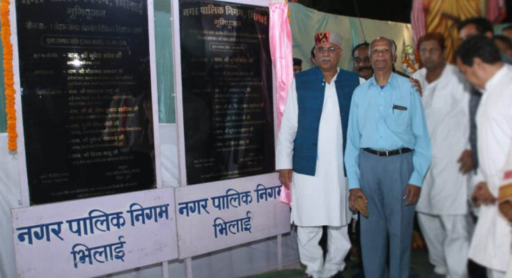 Chief Minister Bhupesh Baghel performed bhoomi pujan of 8 development works costing Rs 3 crore 91 lakh in a program organized at HUDCO located in Bhilai Municipal Corporation area today. In his address, the Chief Minister said that the government is working in a planned manner for the development of the city. There will be no shortage of any kind in the development work. The demands of the people will be met on priority. Forest and Climate Change Minister Shri Mohammad Akbar and MLA Shri Devendra Yadav were present in the program.