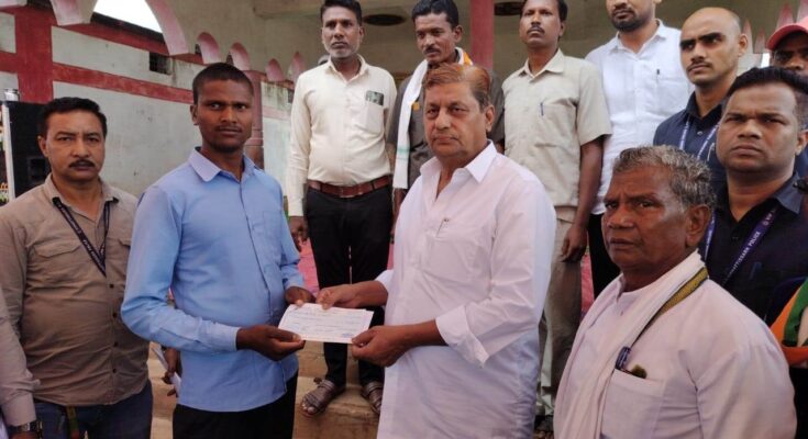 Minister Mr. Akbar met the family members of Mr. Tolam Singh Meravi of Gram Panchayat Pandariya under Bodla development block and distributed a check of Rs. 4 lakh under RBC 6-4. He Mrs. Sangeeta Bharti husband self in village Harinchhapra. Distributed a check of Rs 4 lakh to Bhav Singh under RBC 6-4. Local public representatives including Mr. Hori Sahu were present on the occasion.
