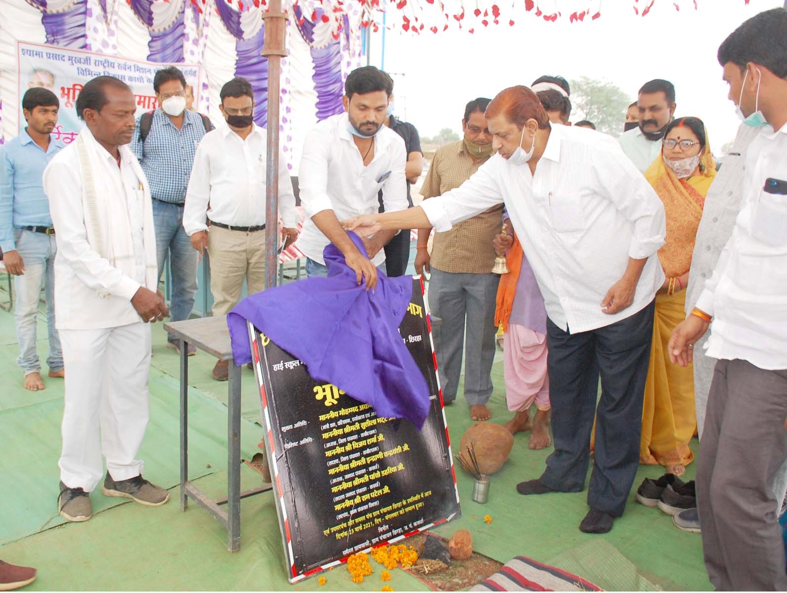 Minister Mr. Mohammed Akbar, from Rurban Scheme, Secondary school building and other construction work in village Manikchauri of Birkona cluster for Rs. 43.55 lakh, pond site and other construction work in village Jinda for Rs. 38.39 lakh, Secondary school in village Dharampura for Rs. 33.90 lakh Building and other construction works, high school buildings and other construction works in village Birkona for Rs 82.25 lakh, high school buildings and other construction works in village Sonpuri Rani for Rs 37.20 lakh, secondary school building and other construction works in village junwani for Rs 23.60 lakh, High school building and other construction work for Rs 44.84 lakh in Village Chirha, Secondary school building for Rs 55.78 lakh in Village Dullapur and CC drain and other construction work, Secondary school building and other construction work in Gram Pali Guda and village for Rs 29.27 lakh 32 in GhughrikalaAfter doing Bhoomi Pujan of secondary school building and other construction works for 21 lakh rupees, the people have been given a big deal.