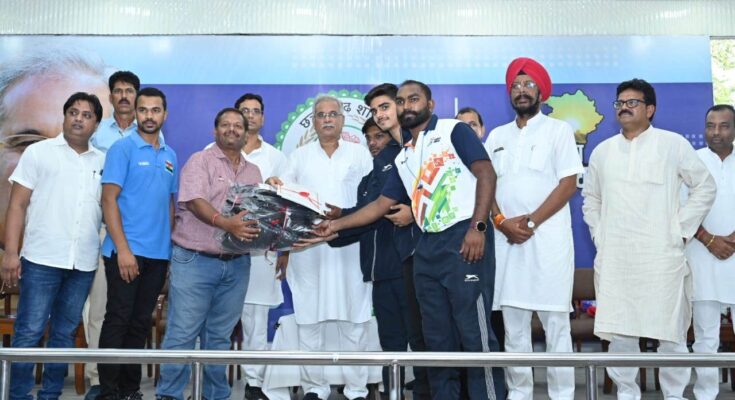 Chief Minister Mr. Bhupesh Baghel has said that continuous efforts are being made to create a good environment for sports in the state. New sports academies are starting. World class training is being given to enhance the playing skills of the players. Chief Minister Mr. Bhupesh Baghel expressed views to this effect at the felicitation ceremony of the sportspersons organized at his residence today on International Olympic Day. He honored the sportspersons of the state who won medals in the 36th National Games held in Gujarat at the function. Players, coaches and team managers participating in these games were also honored in the programme. Chairman of Chhattisgarh Housing Board Mr. Kuldeep Juneja, General Secretary of Chhattisgarh Olympic Association Mr. Devendra Yadav, former Mayor of Raipur Municipal Corporation Mr. Gajraj Pagaria and office bearers of Chhattisgarh Olympic Association were also present in the function.