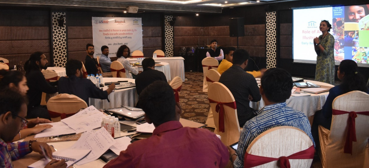 Chhattisgarh State Project Office and international organization Room to Read organized a program in Raipur from February 13 to 15, to fulfill this objective, how helpful can be the diversity of Chhattisgarh state’s environment, children’s imagination and desire to read. Organized 3 days workshop. In the workshop, the experts of the Room to Read organization told how a good children’s literature is a great medium to increase the curiosity in children and increase their desire to read, know and learn. The experts of the organization told that the drawing of stories is a very important part of any children’s literature, which is important not only for children who can read but also for children who do not know how to read or are in the initial stage of reading. Are.