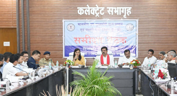 Collector Ms. Richa Prakash Chaudhary informed the Minister-in-charge about the implementation of Central and State Government schemes by the departments in the district. Also, the officials assured that it will be implemented in a better manner in the coming days. Superintendent of Police Mr. Jitendra Shukla gave information regarding gambling, betting and illegal liquor cases, action under Excise Act and NPDS Act and road accidents and challan proceedings etc. District Panchayat President Mrs. Pushpa Yadav, ADM Mr. Arvind Ekka, all SDMs and district head officers of all departments were present in the meeting.