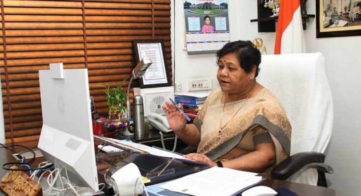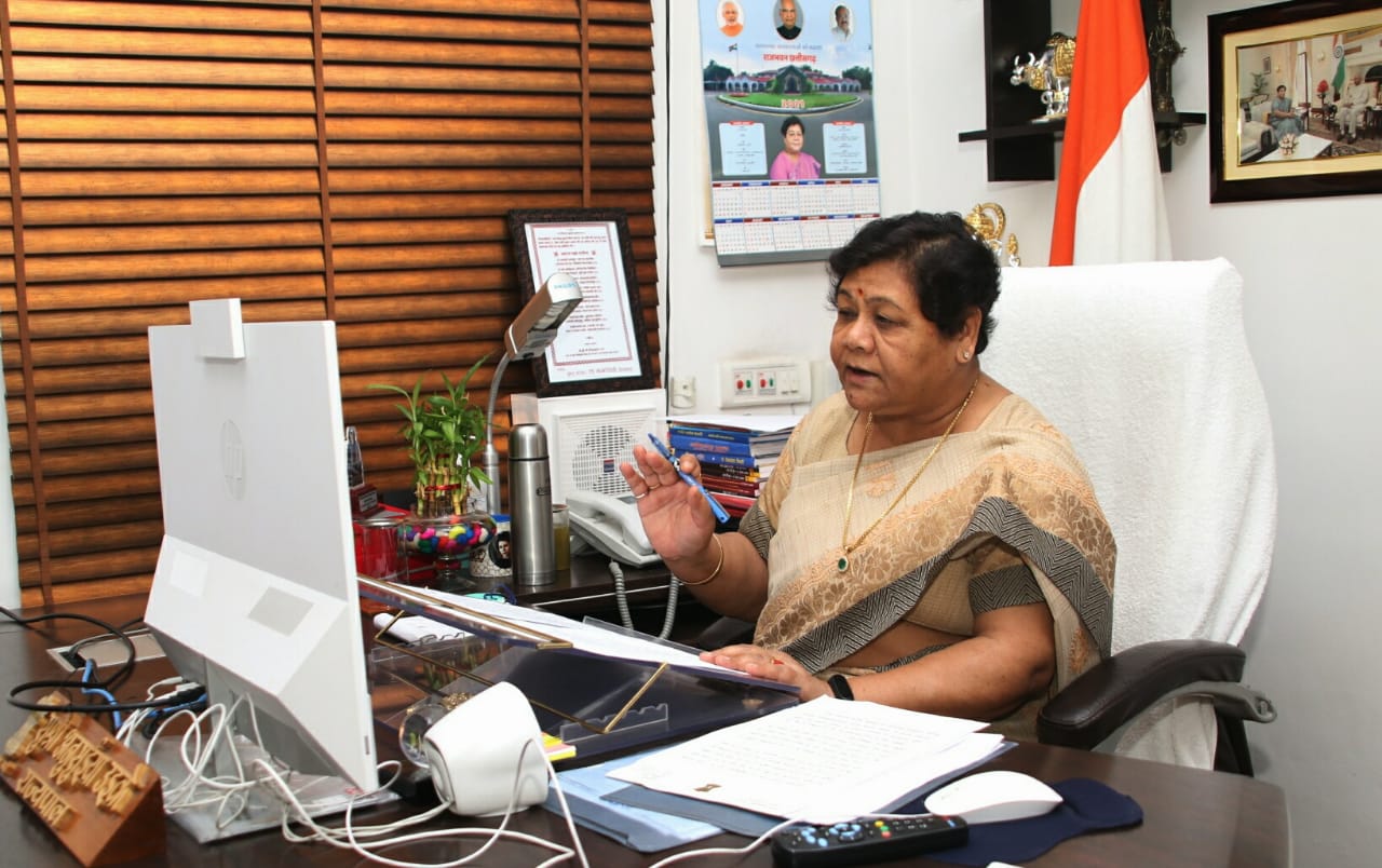 Raipur, 03 May 2021. Governor Ms. Anusuiya Uike has appealed to the tribal society heads of the state to deal with the situation of corona infection which has taken the form of a global epidemic in a virtual meeting held with tribal society heads today.