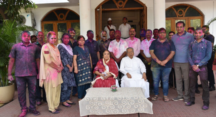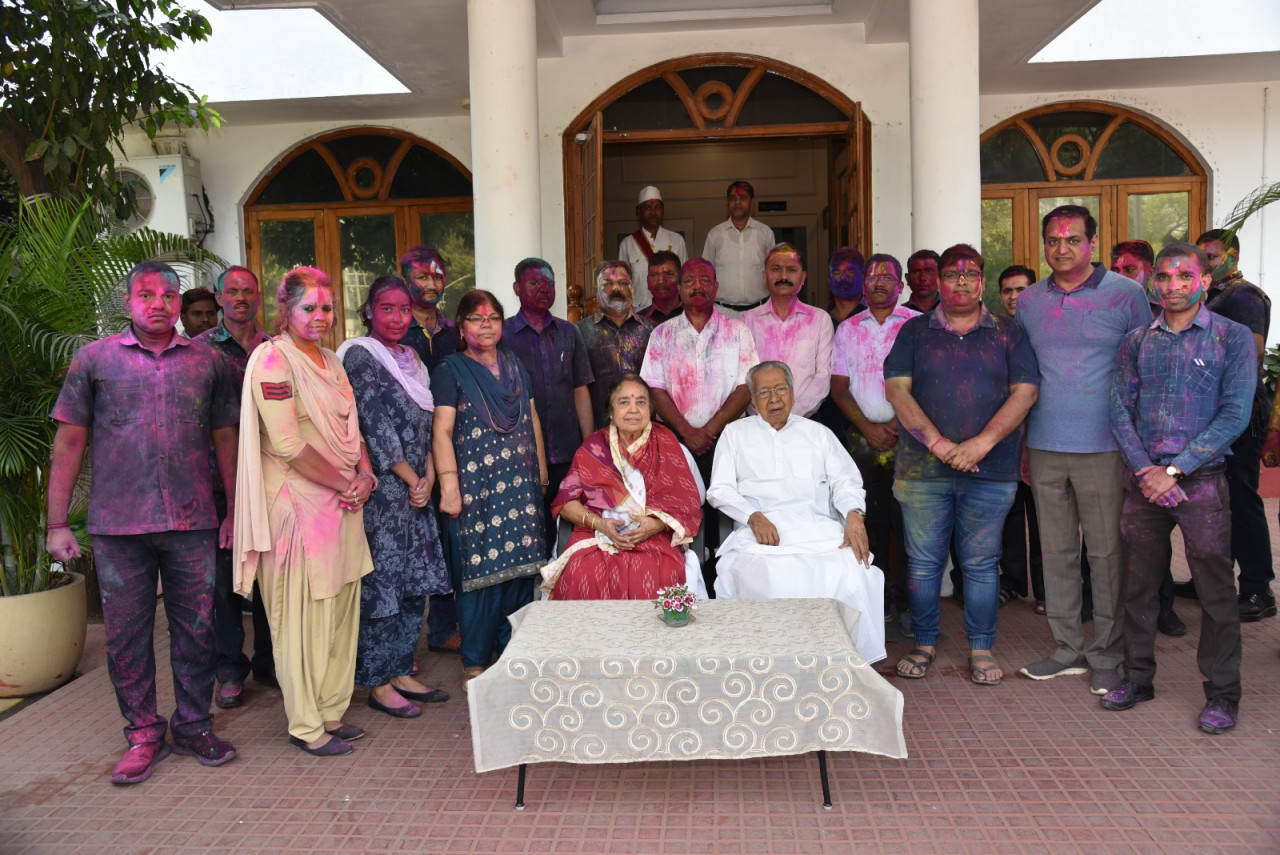 Governor Mr. Vishwabhushan Harichandan and First Lady Mrs. Suprabha Harichandan met the officers and employees of the Raj Bhavan Secretariat on the occasion of Holi today and wished them happiness and prosperity and prosperity from Lord Jagannath.