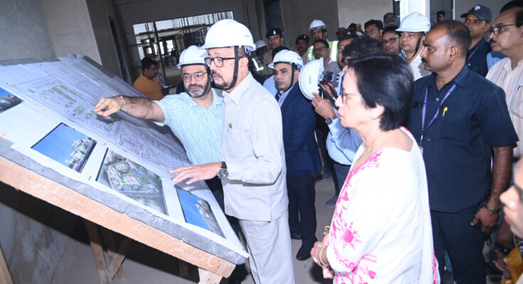 Governor Shri Ramen Deka today inspected the under construction Raj Bhawan in Nava Raipur Sector 24. On this occasion, the first citizen of the state, Smt. Rani Deka Kakoti was also present. The Governor inspected the Governor’s residence, Durbar Hall, Raj Bhawan’s Secretariat building, ADC residence, staff clinic, staff quarters, guard room, security office and other ongoing construction works in the under construction Raj Bhawan.