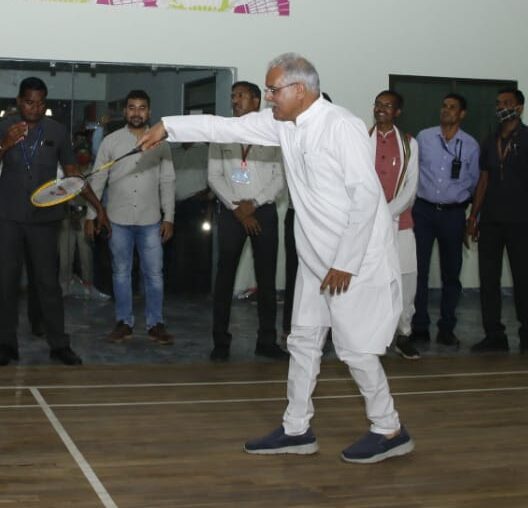 Raipur: Great view of men’s double badminton in Kumhari: Chief Minister also showed the talent of badminton