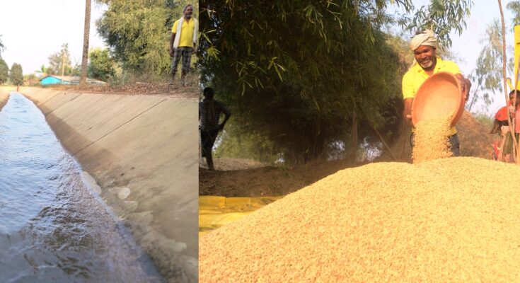 Raipur. 18 February 2021. Permanent lining of canals under MNREGA (Mahatma Gandhi National Rural Employment Guarantee Act) has restored irrigation system in many villages. Farmers are stunned by the timely access of water from the pucca canals constructed in nine small reservoirs in Bijapur district to the fields located at the end. Farmers have achieved good yields this year due to water reaching the fields from paved canals during the Kharif season. With the convergence of MNREGA and DMF (District Mineral Trust Fund), a major task of restoring reservoir irrigation projects was started in the year 2019-20. Its positive results are now visible at the ground level. This work has restored irrigation system in 799 hectare area of Bijapur district.