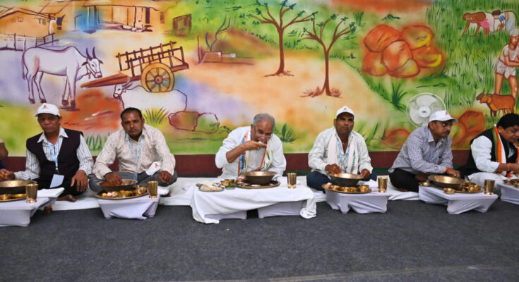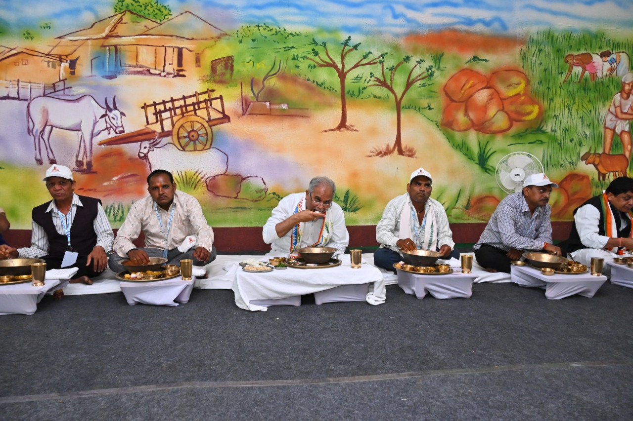 On this occasion, administrative officials, security forces, police personnel, cabinet ministers of Chhattisgarh, MLAs also consumed sacks. In this matter, the people of Chhattisgarh also did not lag behind, they too, taking pride in their culture, consumed gunny bags in honor of the workers and farmers.