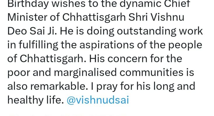 Prime Minister Shri Narendra Modi has congratulated Chief Minister Shri Vishnu Dev Sai on his birthday. Prime Minister Shri Modi wrote in his post on social media platform