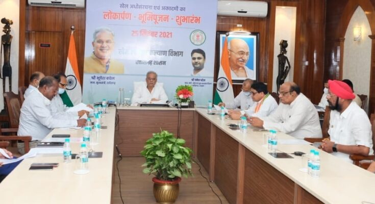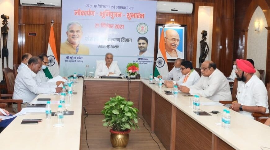 Raipur 25 September 2021. Chief Minister Bhupesh Baghel today made a historic start of seven sports academies for the players of the state. Out of these, 4 sports academies in Bilaspur and 3 in Raipur were duly started today. Hockey, Archery, Athletics and Kabaddi Academy was inaugurated in Bilaspur and Archery, Girls Football and Boys-Girls Athletics Academy in Raipur. Giving a big gift to the players of the state through a virtual program organized at his residence office here today, Chief Minister Shri Baghel inaugurated new sports facilities in Bilaspur and Raipur costing about Rs 42 crore 14 lakh and performed Bhoomi Pujan.