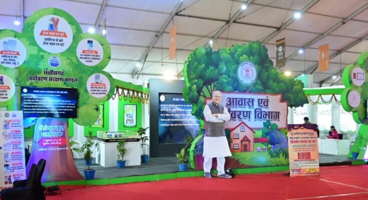 On the occasion of Chhattisgarh Rajyotsava 2022, a stall set up under the Department of Housing and Environment in the Science College Ground campus of Raipur is attracting a lot of people. Among them, special interest is being shown by the people in ‘House on construction cost’ under the exhibition of Chhattisgarh Home Construction Board. Similarly, in the exhibition of Chhattisgarh Environment Protection Board, the message of ban on single use plastic is being given attractively at the entrance itself.