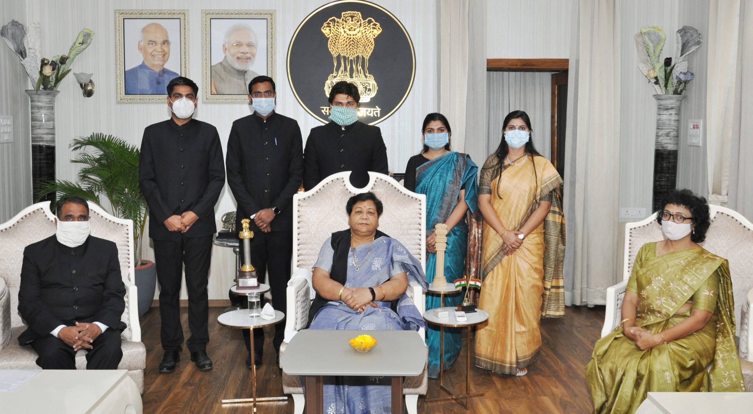 Raipur, 12 March 2021. Smt. Renu G., Director General of Chhattisgarh Academy of Administration, at Raj Bhavan here today from Governor Ms. Anusuiya Uike. Probation officers of the Indian Administrative Service led by Pillay met courtesy. The Governor said that when you are posting in the field, then try to implement what you have learned at the ground level. Try as much as possible to solve public problems. Chhattisgarh is a tribal dominated state. Be aware of all the provisions of the Fifth Schedule. When you are posted in the Scheduled Area and the people of the tribal community bring any problem to you, then keep in mind the human sentiments and solve their problems. On this occasion, Director of Chhattisgarh Academy of Administration Shri T.C. Mahawar, Training Director Smt. Seema Singh were also present.