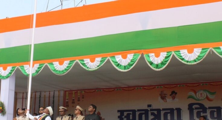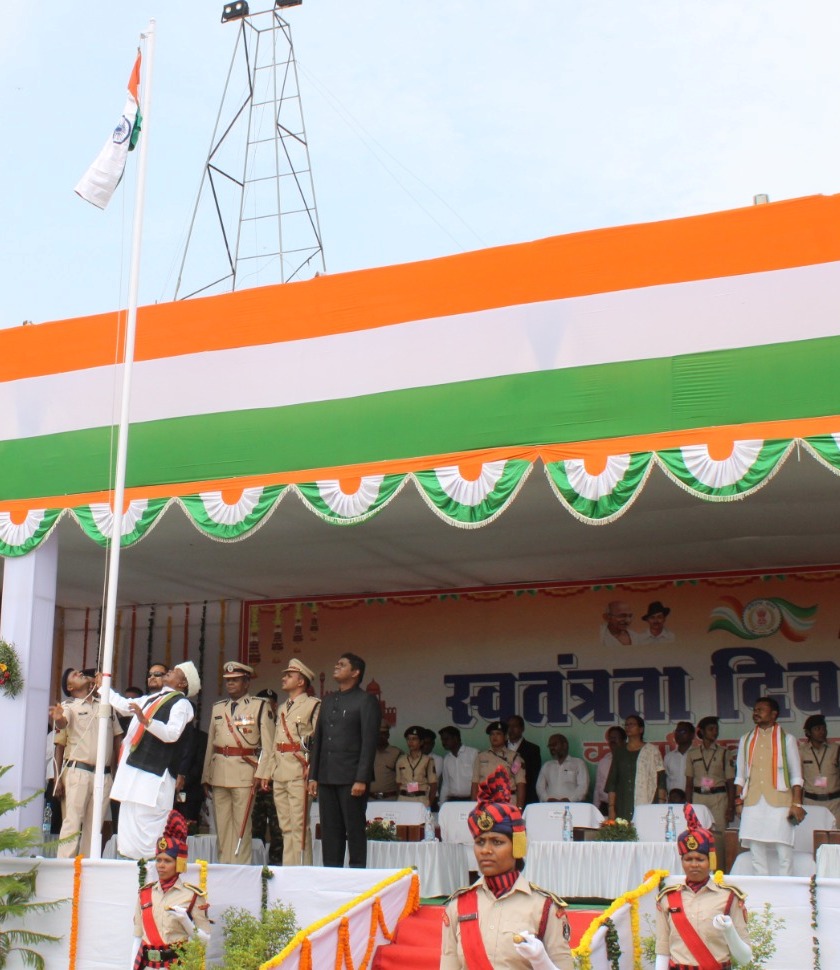 In Sukma district, 77th Independence Day was celebrated with great enthusiasm in a dignified atmosphere. Industries Minister Mr. Kawasi Lakhma took the salute of the parade by hoisting the flag at the district level Independence Day function organized at Mini Stadium, Sukma on the 76th anniversary of independence. After inspection and salute of the parade, the chief guest released white doves symbolizing peace and love and colorful balloons symbolizing joy and gaiety in the sky and wished everyone a happy Independence Day. After this, the message sent by the Chief Minister of the state Mr. Bhupesh Baghel to the people of the state was read out.
