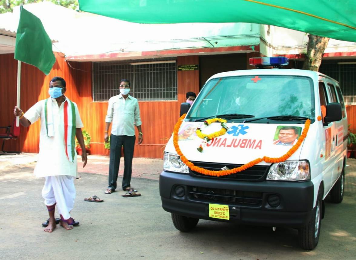 Raipur: Industry Minister Mr. Kavasi Lakhma presented ambulance to provide better medical facilities to the people of Vananchal region