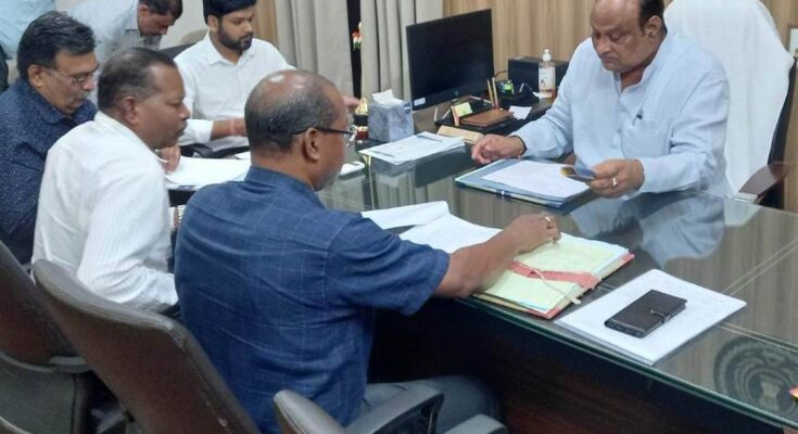 Revenue and Disaster Management Minister Jaisingh Agrawal took a meeting of the inter-departmental committee on Friday. They discussed various issues including land allotment. Mr. Agrawal inquired about the applications received for allotment of land. In the meeting, it was decided to allot land to Raipur Development Authority for the construction of different types of buildings under Indraprastha Phase-2 Raipur Housing Scheme. Apart from South East Central Railway, Rajnandgaon, 4 other cases were also discussed and instructions were given to complete the process of allotment of land under the prescribed premium and land rent of the respective cases and prescribed rules. In the meeting, Secretary, Revenue Department, Shri N. N. Ekka, Revenue Department’s Under Secretary Shri Umesh Kumar Patel, Housing and Environment’s Under Secretary Shri C Tirkey, Finance Department’s Under Secretary Shri Nikhil Agrawal and members of the Inter-departmental Committee were present.