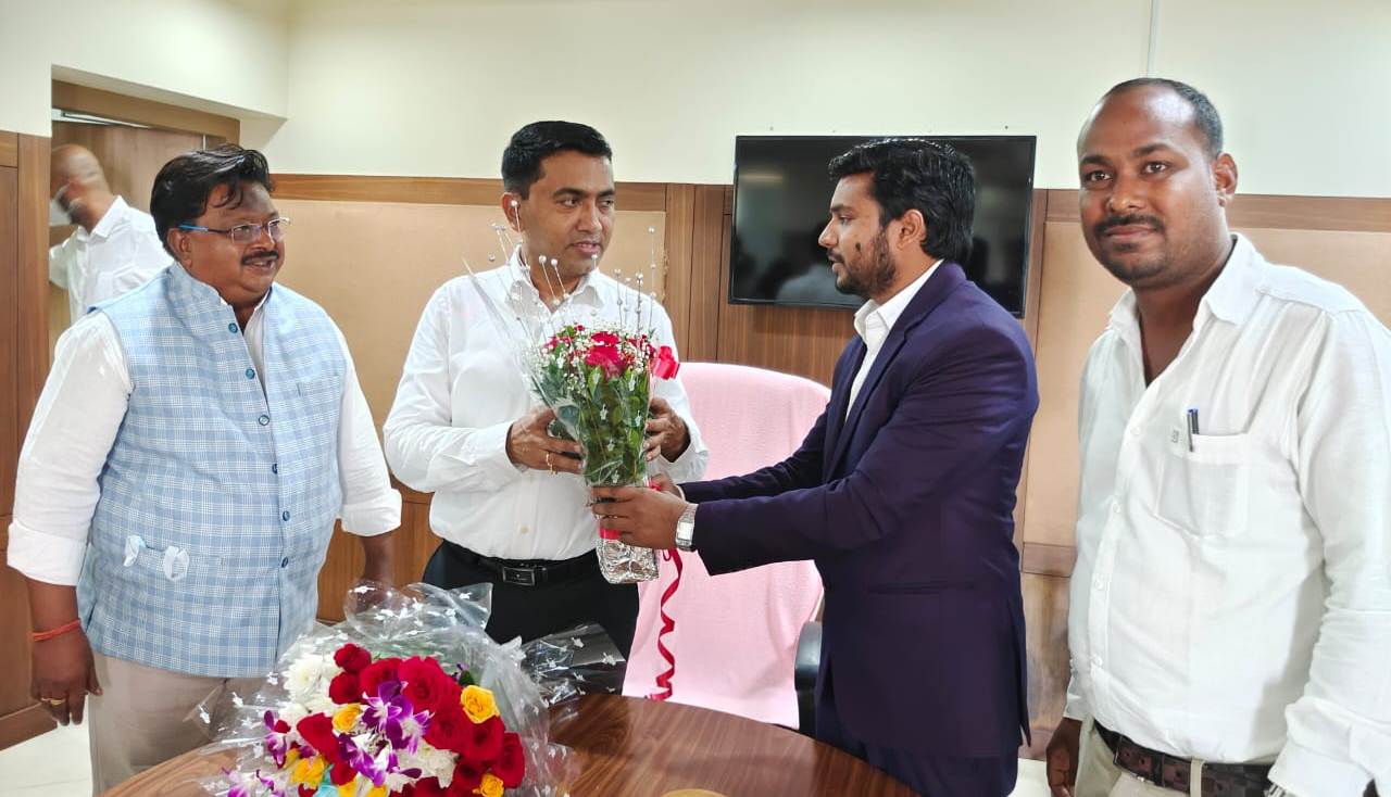 Raipur, 10 October 2021. The Chief Minister of Goa, Dr. Pramod Sawant, was invited by the Parliamentary Secretary Shri UD Minj on behalf of the Government of Chhattisgarh to participate in the National Tribal Dance Festival to be organized by the Government of Chhattisgarh. On this occasion, he invited Chief Minister Dr. Sawant to participate in the Rajyotsava organized on November 1 on the occasion of Chhattisgarh State Foundation Day. Chief Minister Dr. Sawant thanked the Chhattisgarh government especially Chief Minister Bhupesh Baghel for being invited to the National Tribal Dance Festival and Chhattisgarh Rajyotsava.