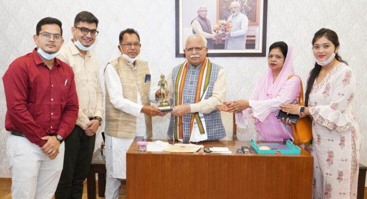 Raipur, 10 October 2021. Haryana Chief Minister, Mr Manohar Lal Khattar, on behalf of the Chhattisgarh government, has been invited by the Parliamentary Secretary and MLA of Kanker Assembly constituency, Mr. Shishupal Shori, to participate in the National Tribal Dance Festival to be organized by the Government of Chhattisgarh. On this occasion, he invited Chief Minister Mr. Khattar to participate in the Rajyotsava organized on November 1 on the occasion of Chhattisgarh State Foundation Day. Chief Minister Khattar thanked the Chhattisgarh government, especially the Chief Minister Bhupesh Baghel, for being invited to the National Tribal Dance Festival and Chhattisgarh Rajyotsava.