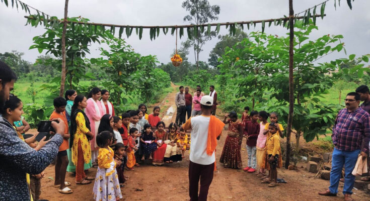 In this regard, Principal Chief Conservator of Forests and Forest Force Chief Shri V. According to the information received from Srinivasa Rao today, on the occasion of Janmashtami, under the guidance of Forest Minister Mr. Mohammad Akbar, forest divisions across the state organized programs in the Krishna Kunjs of their respective areas and gave a message of public awareness towards the environment. Under the programme, “Matki Phod” competition was organized by the Forest Division, Bijapur at Krishna Kunj. Along with this, the children and the people present there were informed about the plants of religious and cultural importance planted in Krishna Kunj.