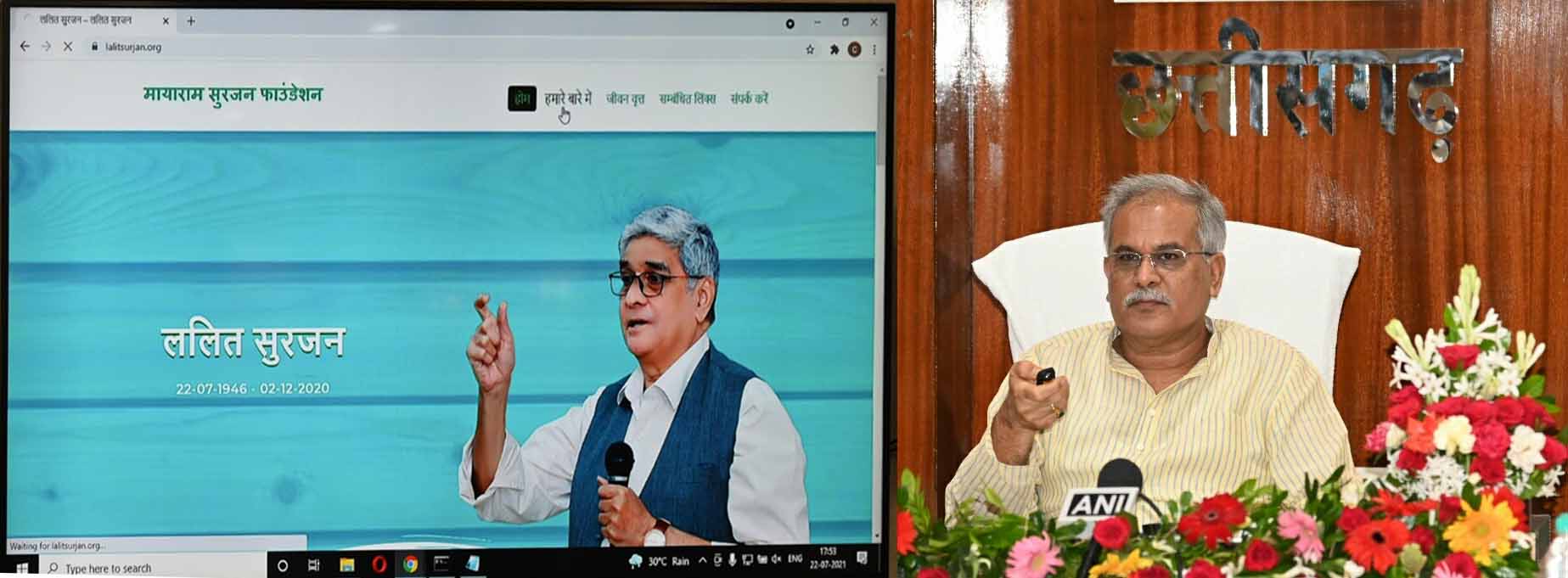 Raipur, 22 July 2021. Chief Minister Bhupesh Baghel said that senior journalist Late Shri Lalit Surjan ji has given new heights to the journalism of Chhattisgarh by carrying forward the tradition of fair, creative and public-concerned journalism. He integrated all these three areas in Deshbandhu through journalism, literature and social service. Mr. Baghel was the chief editor of Deshbandhu newspaper group from his residence office today. Shri Lalit was addressing the 75th birth anniversary celebrations of Surjan virtually. The program was organized by the Chhattisgarh unit of All India Peace and Solidarity Committee. Chief Minister Shri Baghel also inaugurated a website based on the works, articles and works of Shri Lalit Surjan ji on this occasion. Senior journalists, litterateurs and intellectuals from the country and abroad joined the program virtually.