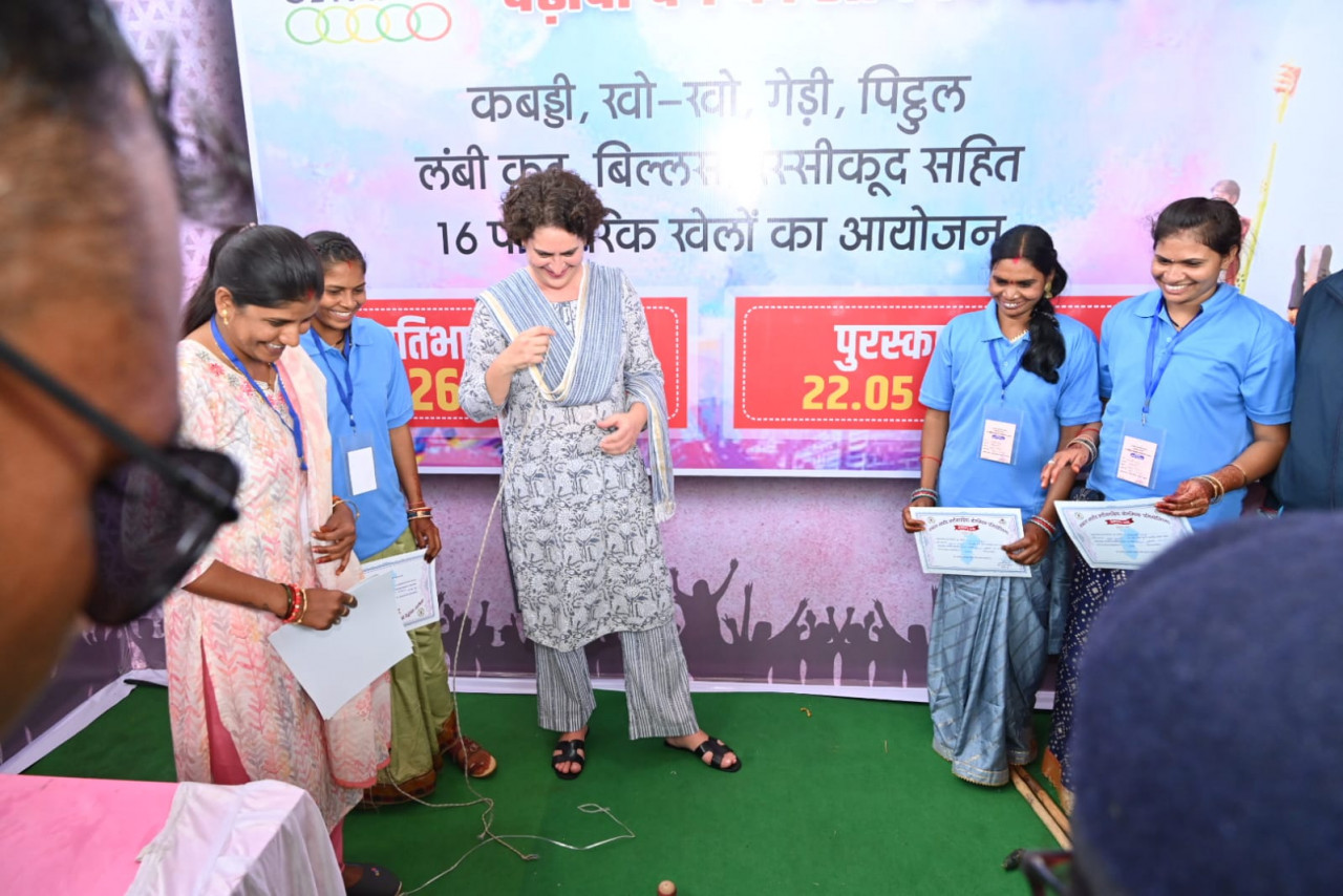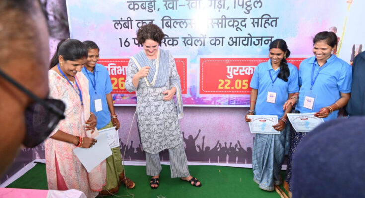 During his address, Chief Minister Mr. Bhupesh Baghel said that when Priyanka didi played Bhanwara, I thought that she would not be able to play Bhanwara properly but she played Bhanwara very well, I myself was surprised. Hearing this, Mrs. Priyanka Gandhi also responded with a smile.