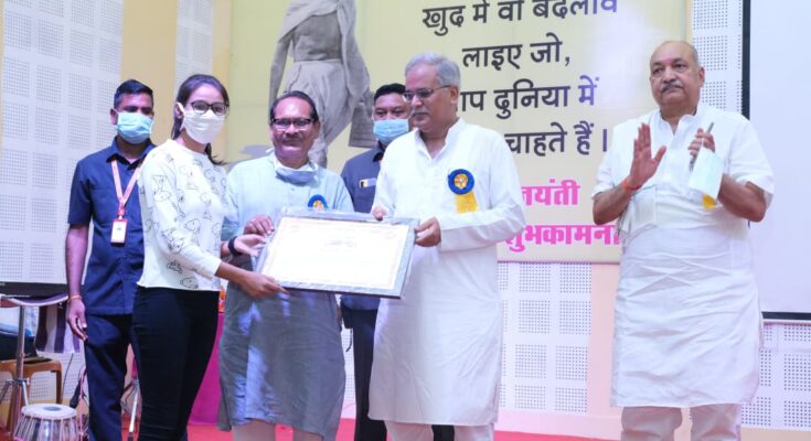 Addressing the program, Chief Minister Shri Baghel said that in the 75th year of independence, in order to keep the values, principles, ideals and concept of ‘Gram Swaraj’ of Mahatma Gandhi intact, service on the lines of Wardha in Nava-Raipur. Village will be established. In this institute, to be developed on about 75 to 100 acres of land in Nava-Raipur, arrangements will be made for training of all types of artisans to strengthen the rural economy and to realize the dream of self-reliant village. He said that the basic education of Mahatma Gandhi would be included in the academic curriculum of classes 5th to 12th to make the new generation familiar with the ideals and principles of Mahatma Gandhi. To introduce the concept of self-reliant village of Mahatma Gandhi and village life, school children will be taken to the villages.