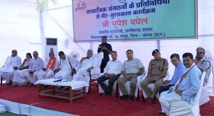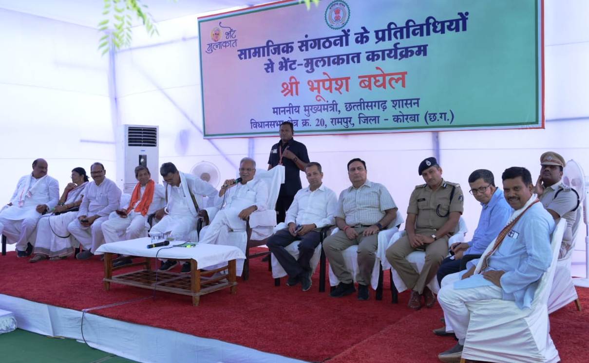 Various social organizations and delegations met Chief Minister Mr. Bhupesh Baghel today during the meeting-meet program in Rampur assembly constituency at Kudmura village. On this occasion, on the demand of the representatives of various communities, the Chief Minister has given instructions to the district administration to sanction funds for the construction of social buildings as well as solve their problems.